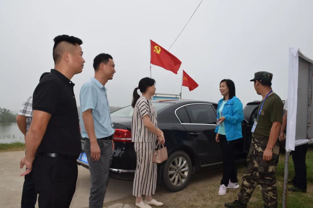 在黄盖湖干堤防汛指挥部,市委常委、市委统战部尹军英对爱心企业心系一线防汛人员的情怀给予了高度的赞扬和真诚的感谢。市科信局副局长、黄盖湖干堤防汛指挥部临时党支部书记李大海向慰问组详细介绍了黄盖湖干堤防汛情况和人员值守情况。