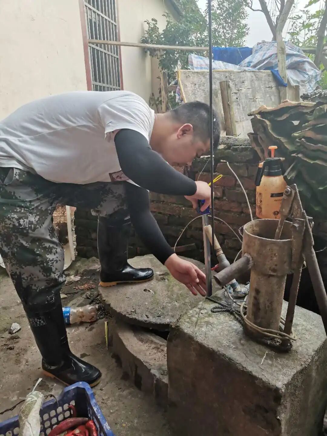 除了每天正常巡堤之外,堤脚下的一片生活区也是值守人员每天要重点巡查的地方。这里属于湖南省临湘市黄盖镇,是该市白沙洲畜牧良种场的生活区。因历史原因几乎家家户户都有水井,在长江高水位行洪时也是隐患。
