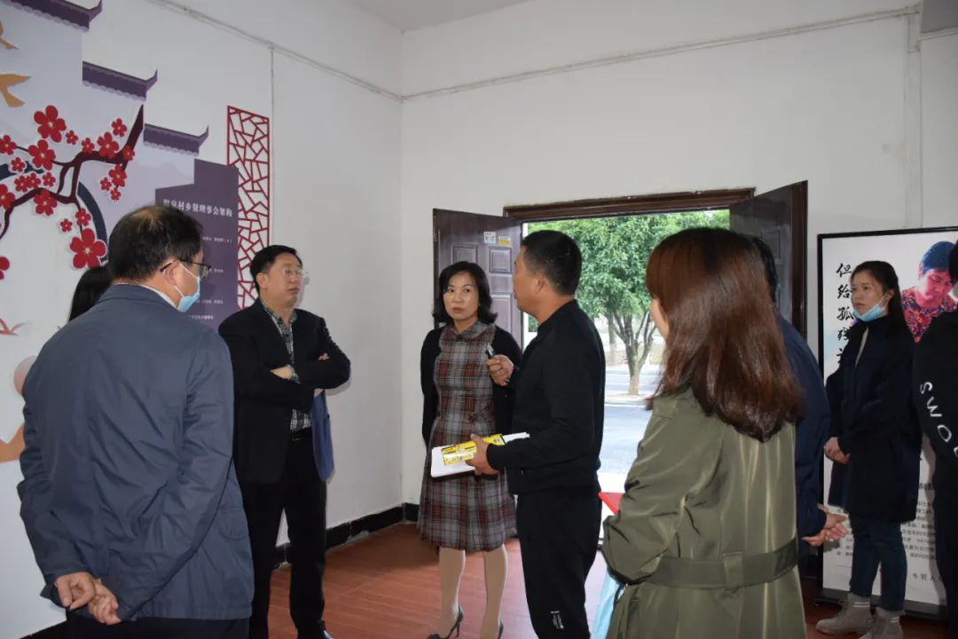 ▲梁细林一行在茶庵岭镇温泉村乡贤统战工作基地