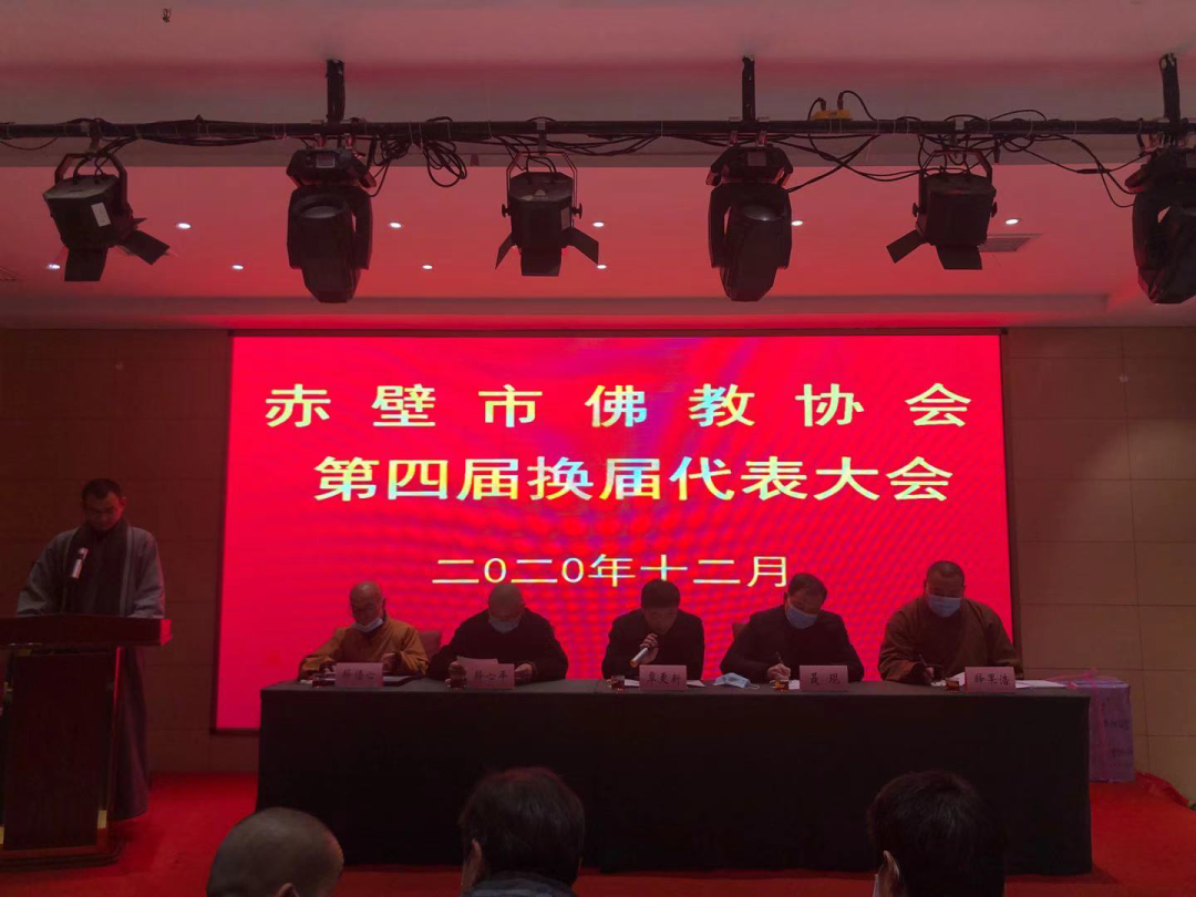 12月18日,赤壁市佛教协会在金桥宾馆召开第四次换届代表大会,全市佛教界53名代表参加会议,赤壁市委统战部副部长、民宗局局长覃更新出席会议并讲话。