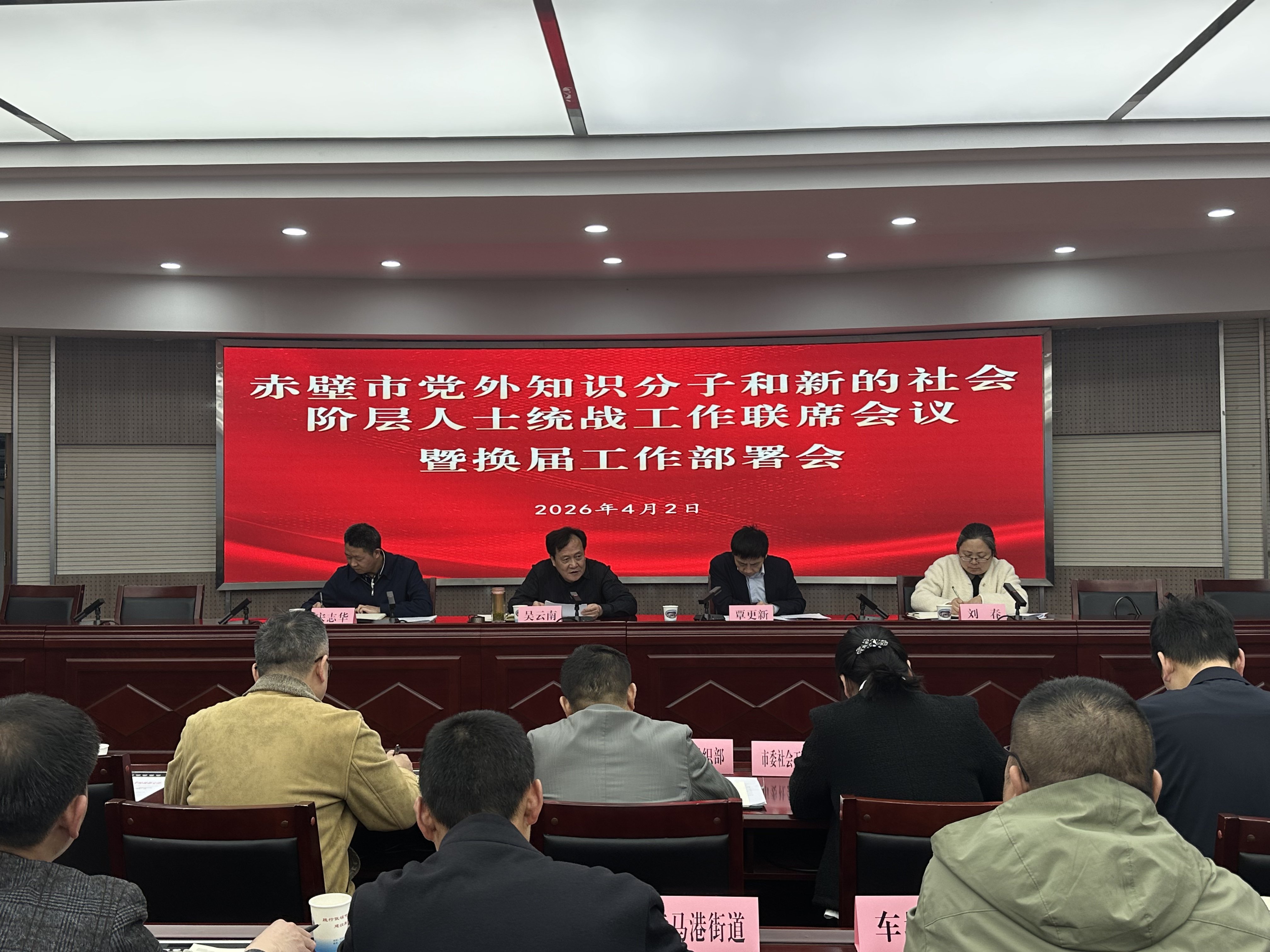 4月2日,赤壁市召开党外知识分子和新的社会阶层人士统战工作联席会议暨换届工作部署会。
